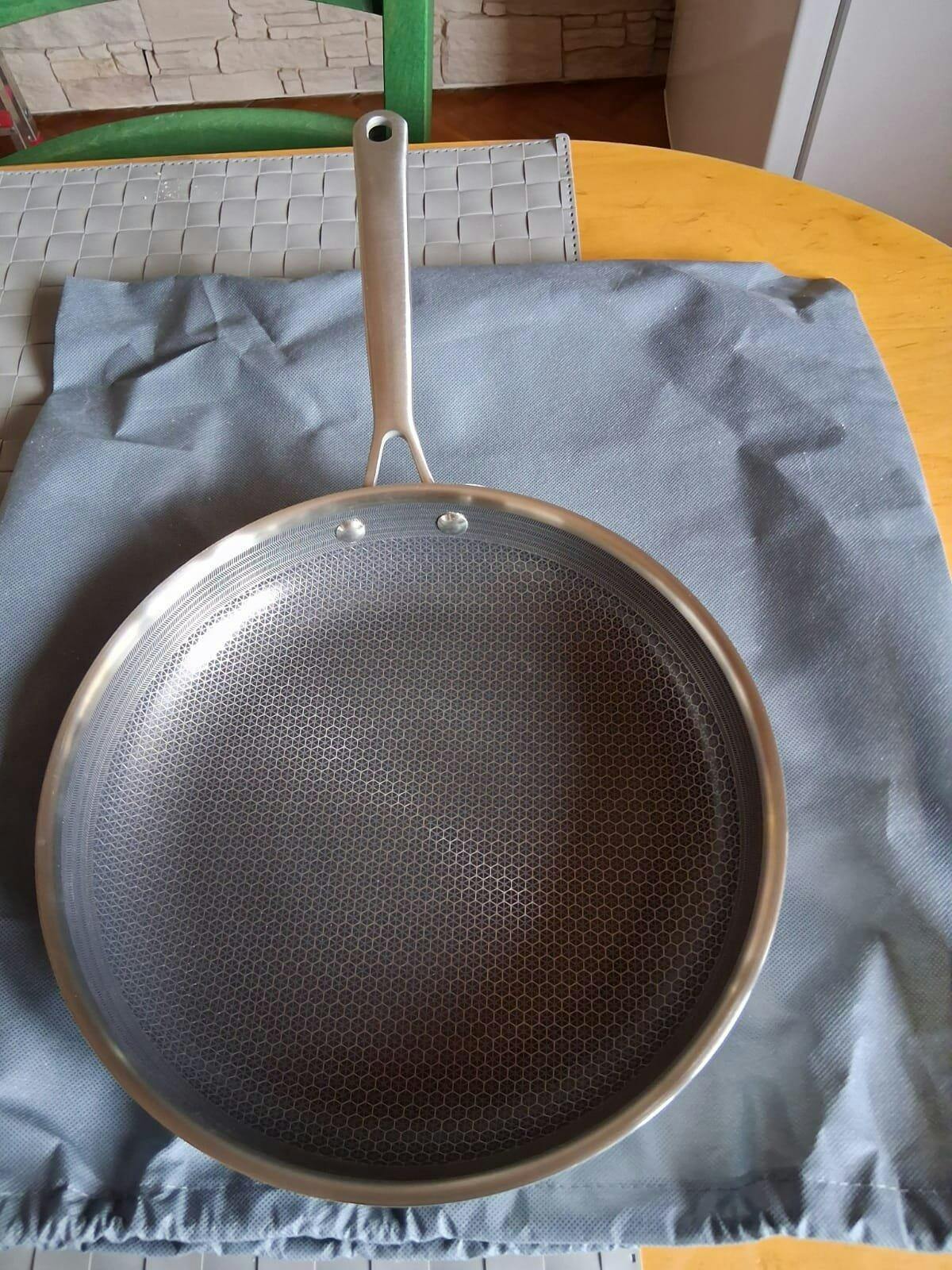 Třívrstvá nerezová konstrukce zajišťuje rovnoměrný ohřev a výborné držení tepla, zatímco hybridní povrch odolný proti poškrábání zvládne i použití kovového náčiní. Hodí se na všechny typy sporáků včetně indukce. Ke pánvi lze dokoupit skleněnou poklici.